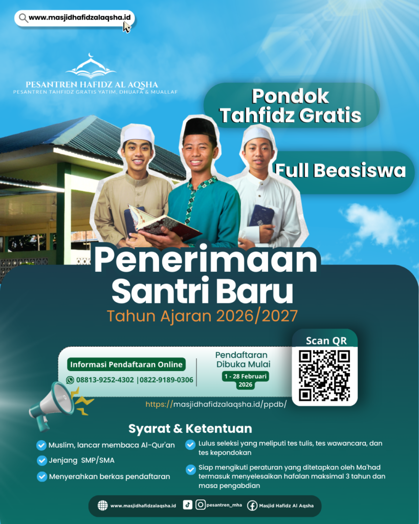 Penerimaan Peserta Didik Baru Pesantren Hafidz Al Aqsha Tahun Ajaran 2026/2027 Telah Dibuka!